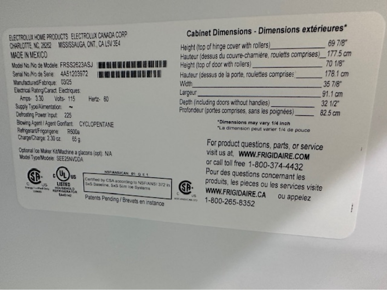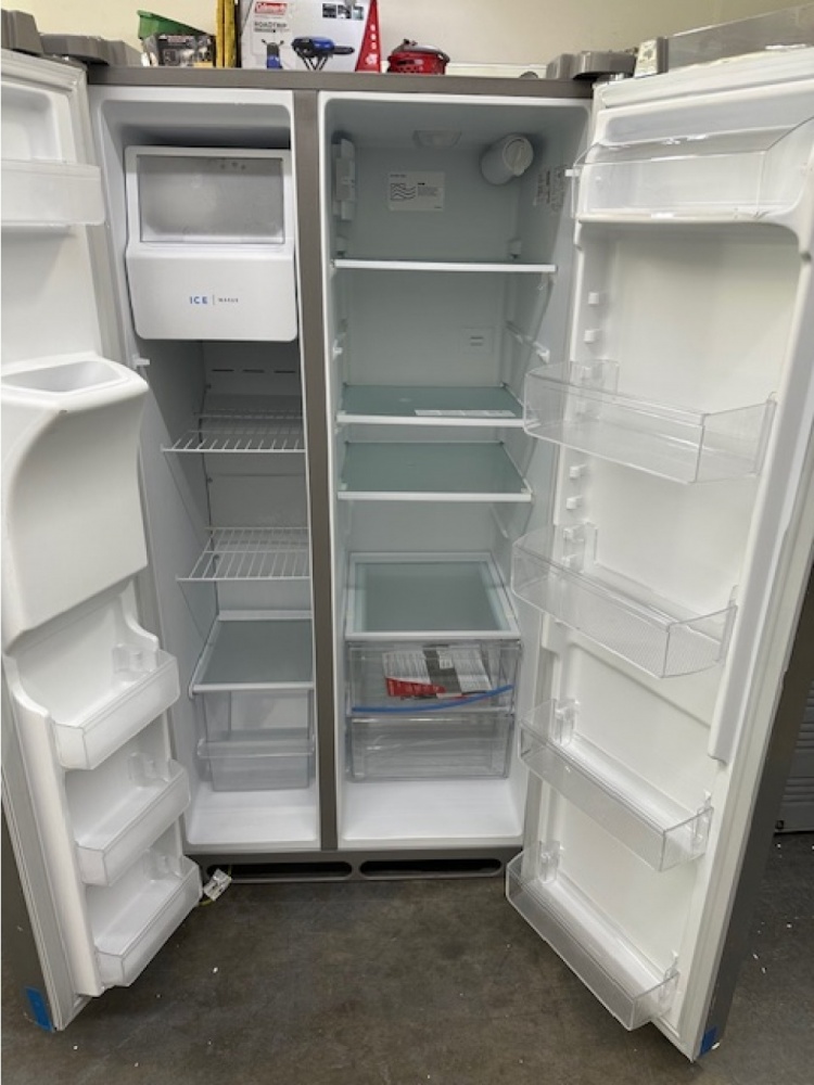new-frigidaire 26 cu. ft. 36" standard-depth side-by-side refrigerator (stainless steel)