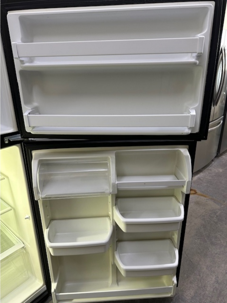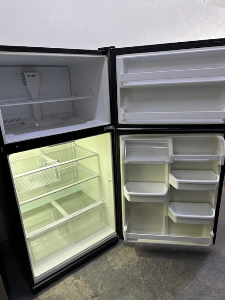 pre-owned maytag 20.9 cu.ft. top freezer refrigerator (black)