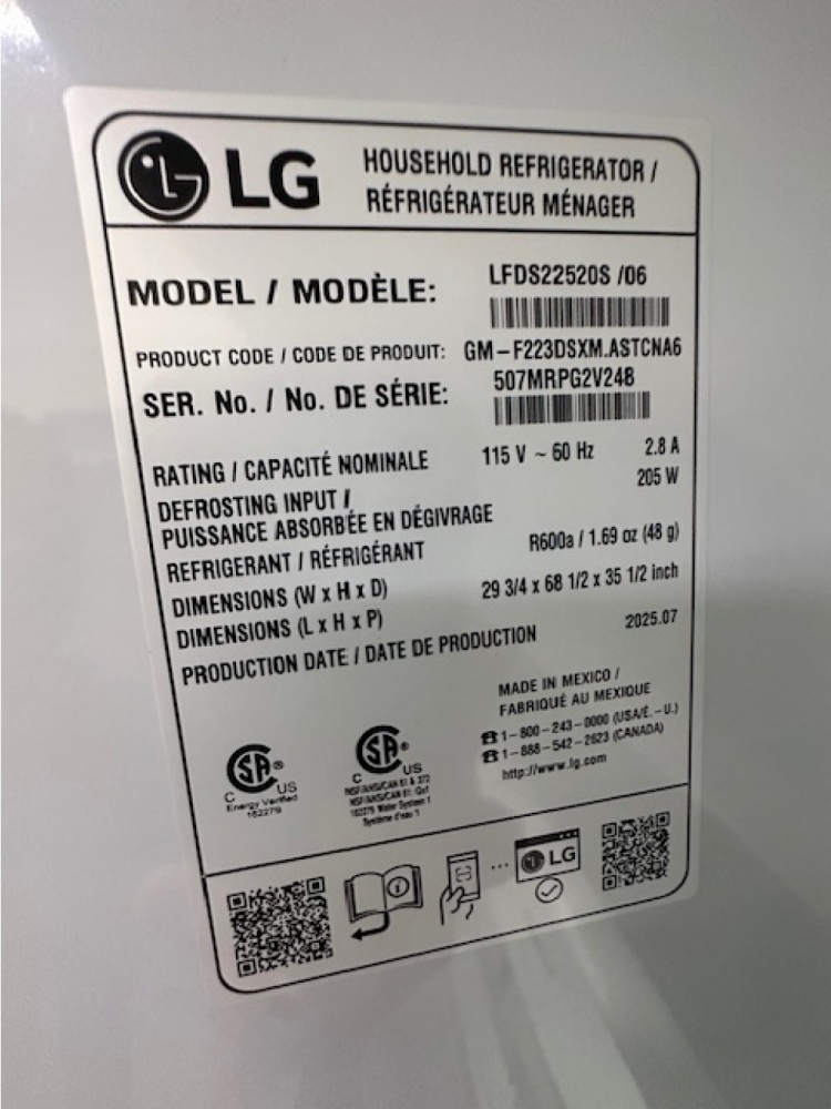 new- lg 22 cu. ft. standard-depth french door refrigerator (stainless steel)