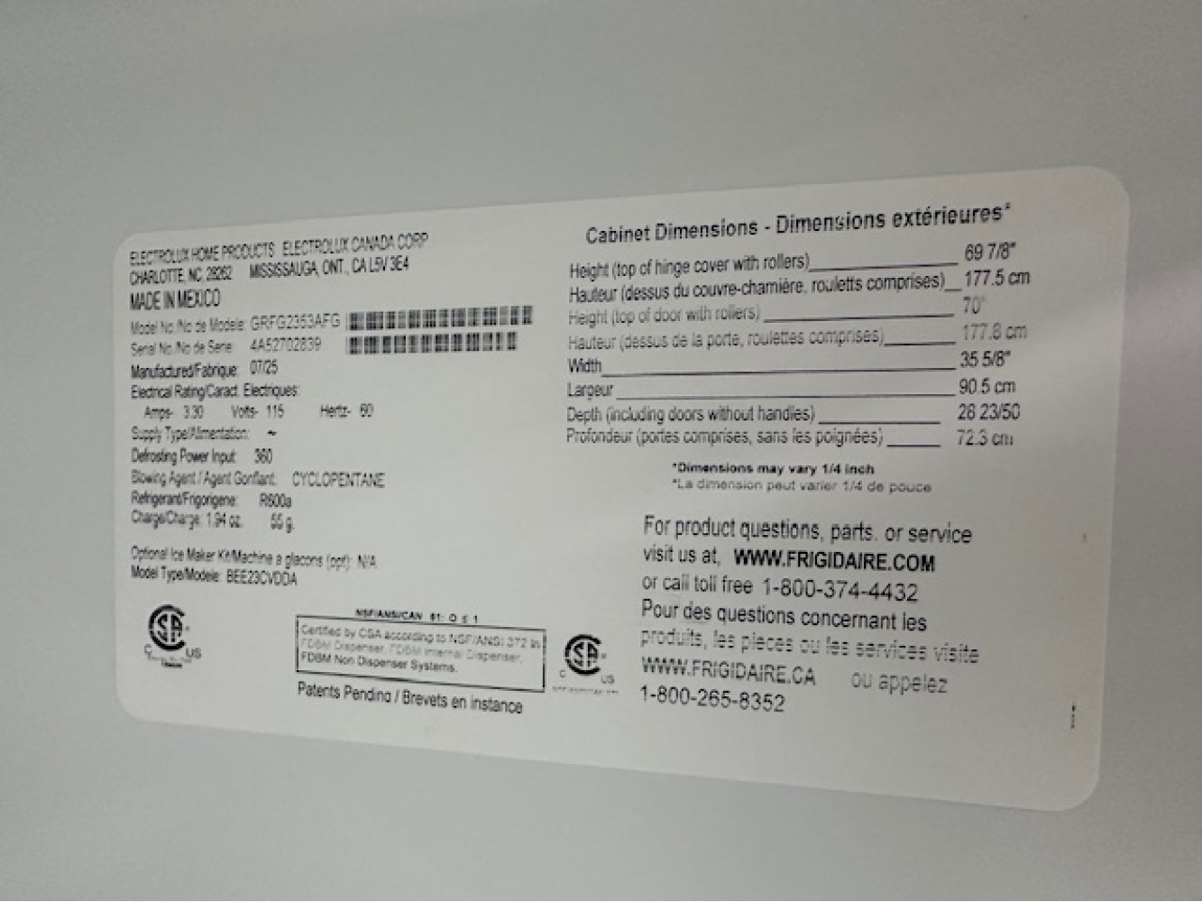 model #grfg2353af