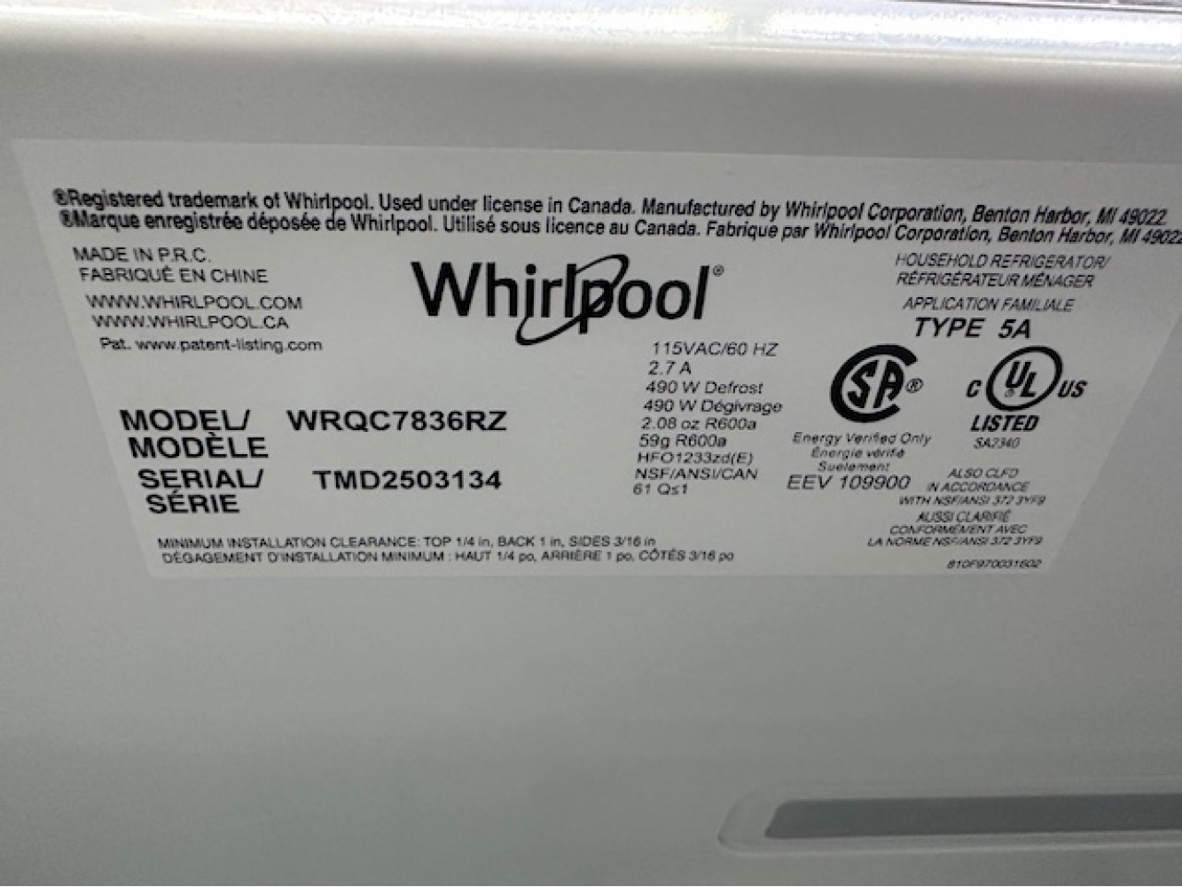 new- whirlpool 36-inch counter depth 4 door refrigerator with ice maker in door (stainless steel)
