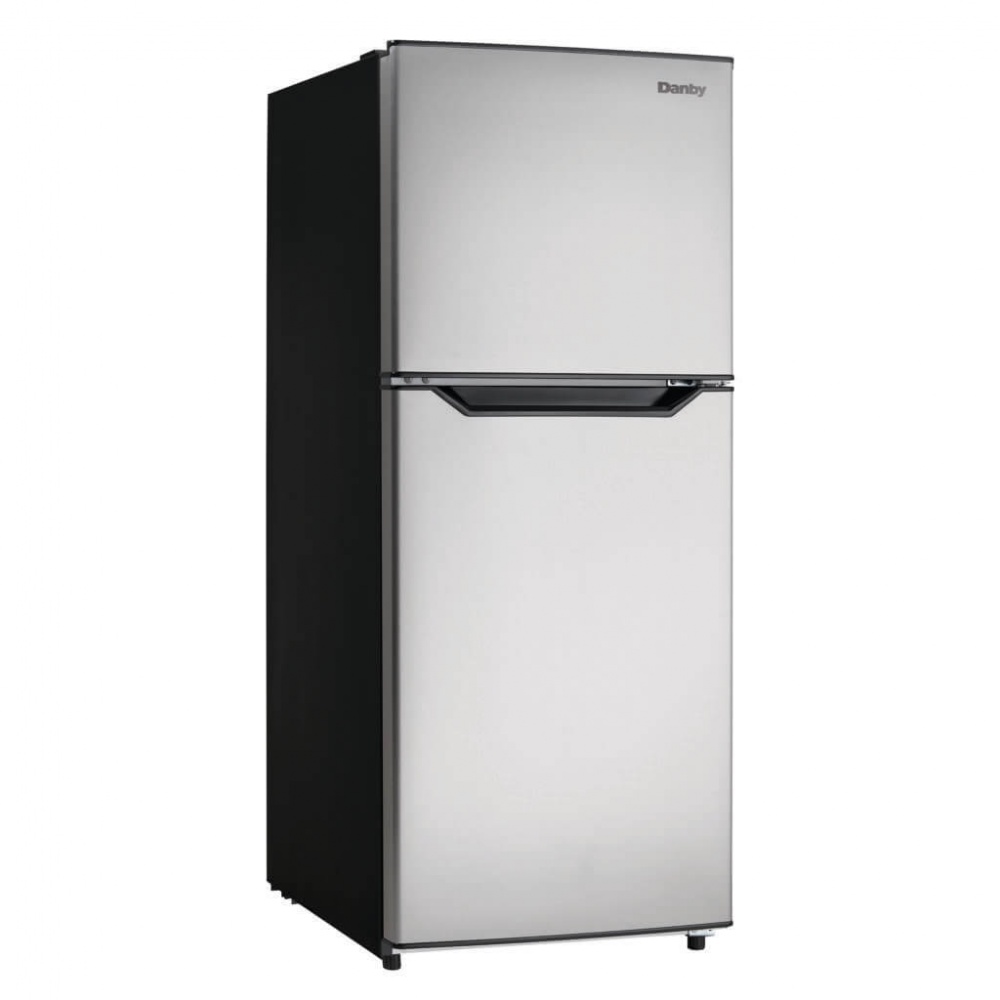 coming soon! new-danby 10.1 cu. ft. apartment size top mount fridge in stainless steel