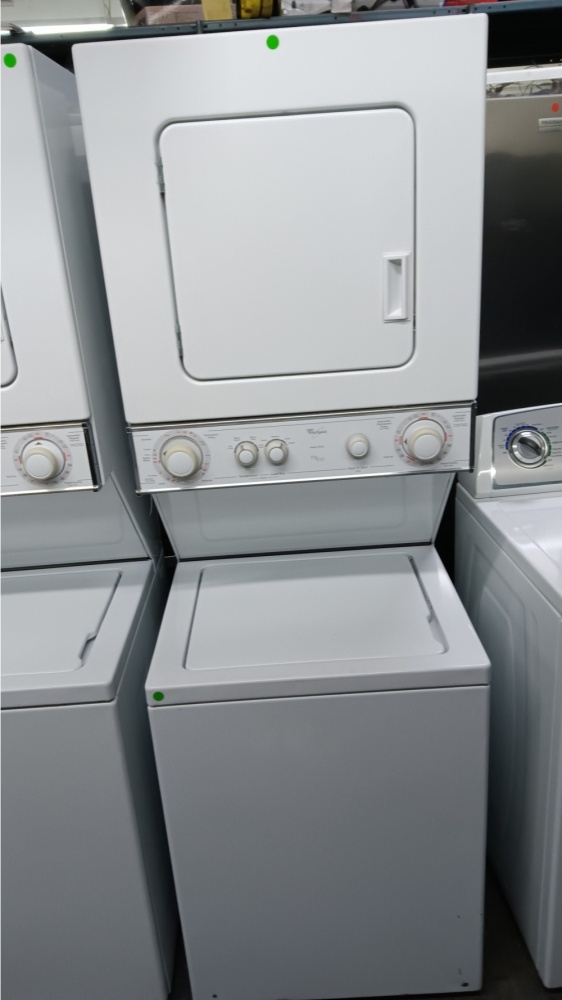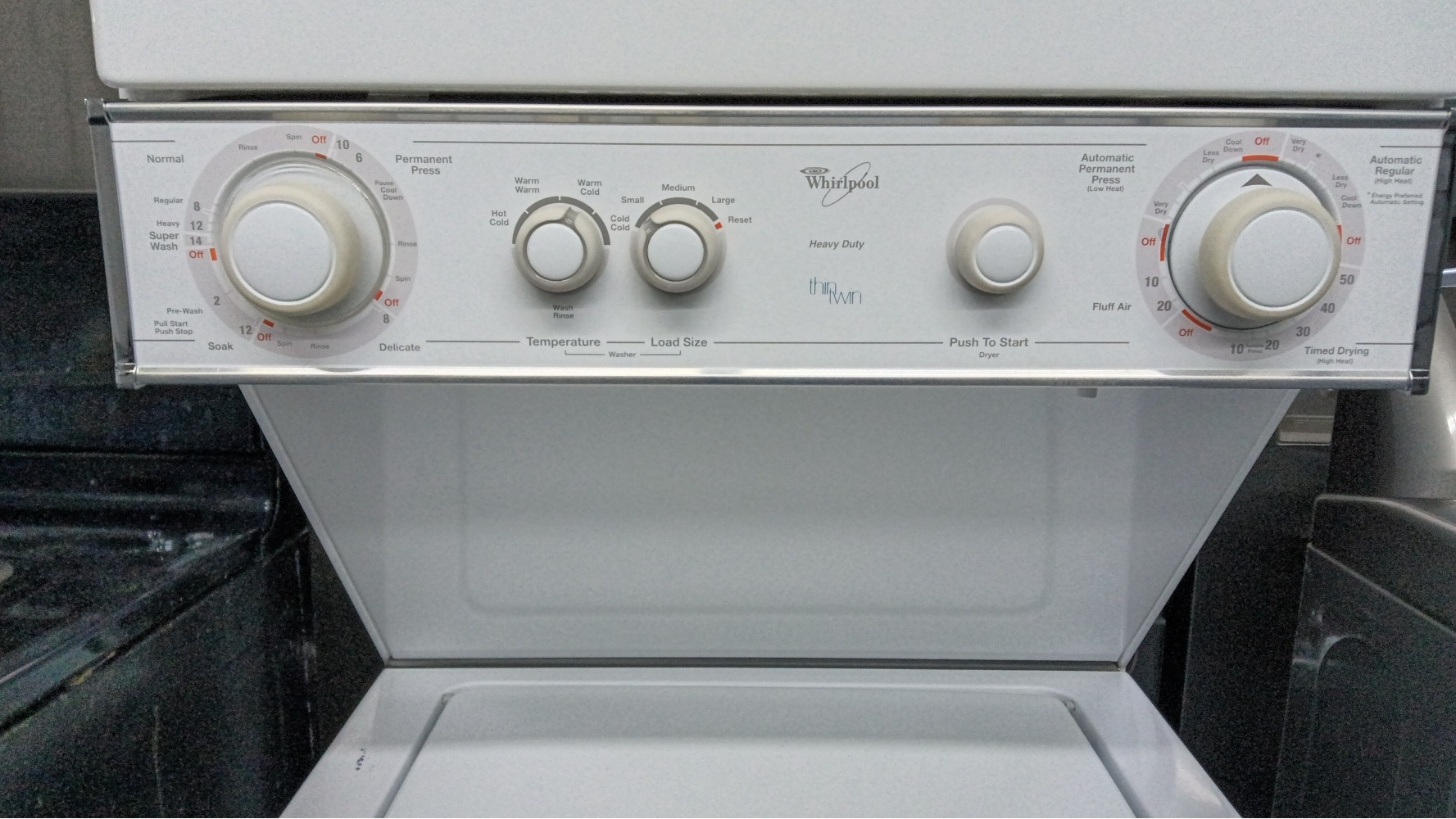 pre-owned whirlpool thin twin gas laundry center w/ 1.5 cu. ft. washer and a 3.4 cu. ft. dryer mode