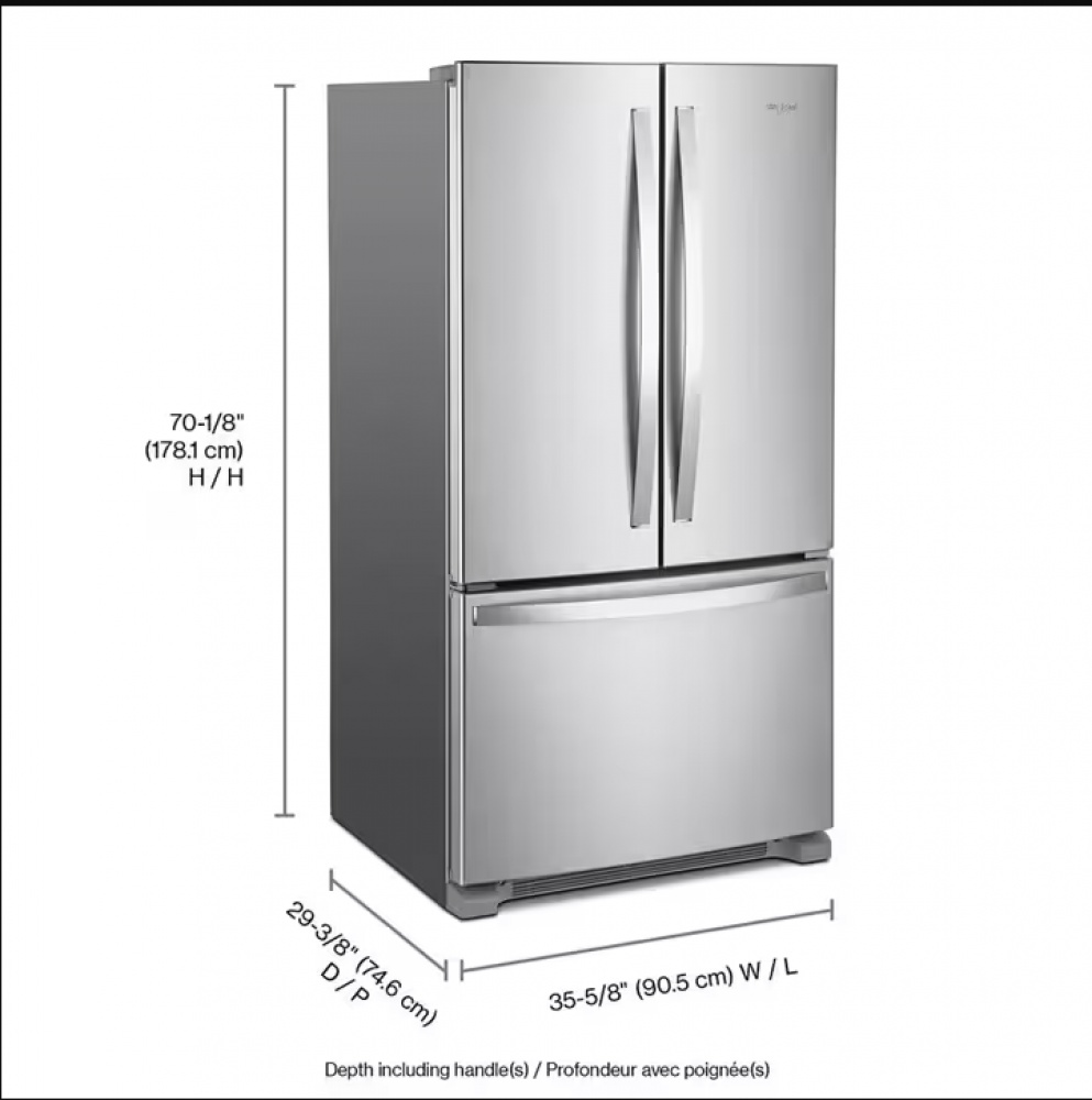 new-whirlpool 36-inch-wide counter-depth french door bottom mount refrigerator - 20 cu. ft. (fingerprint resistant stainless steel)