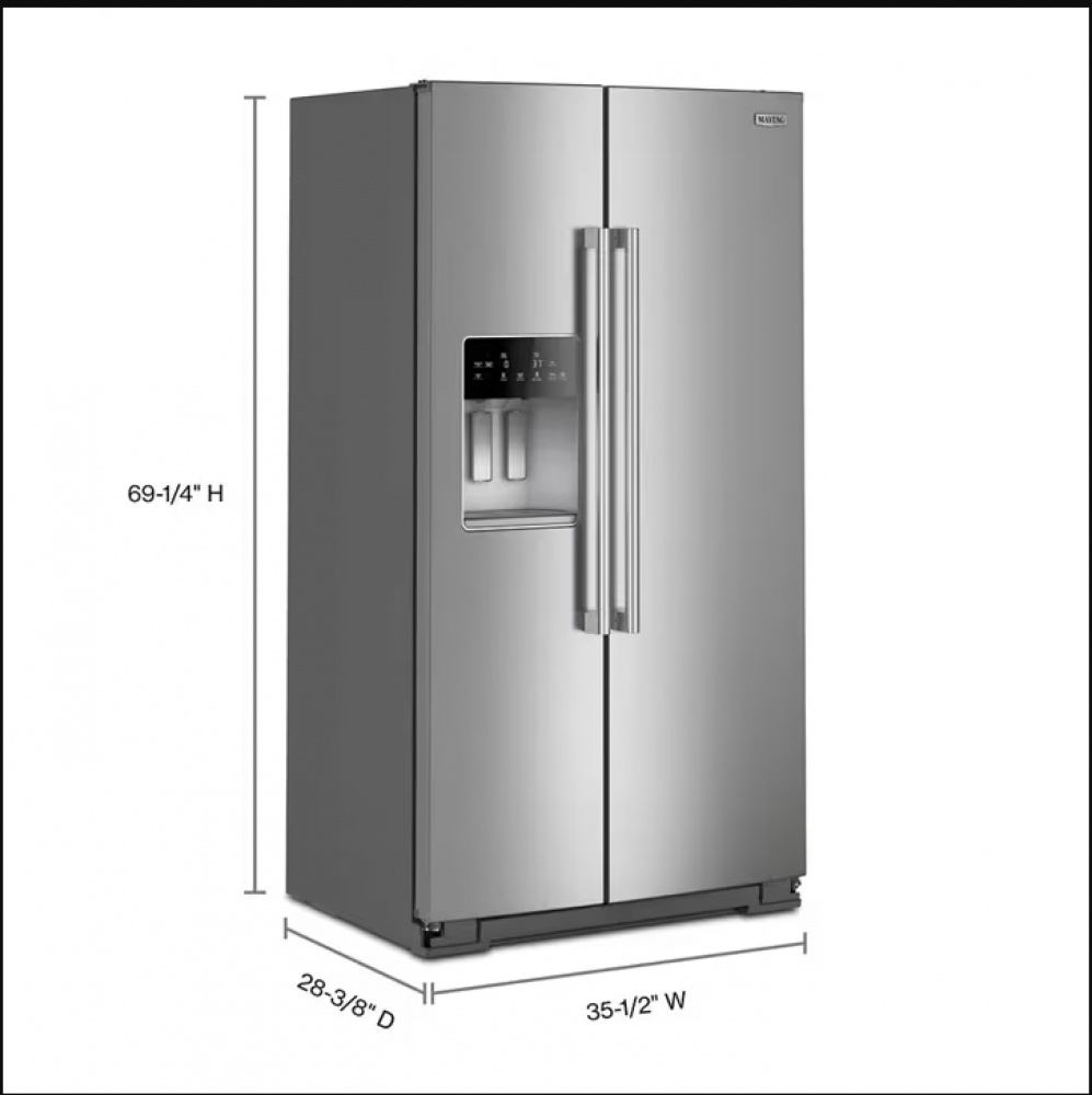 new- maytag 36-inch wide counter-depth side-by-side refrigerator with arctic blue interior - 20.8 cu. ft.