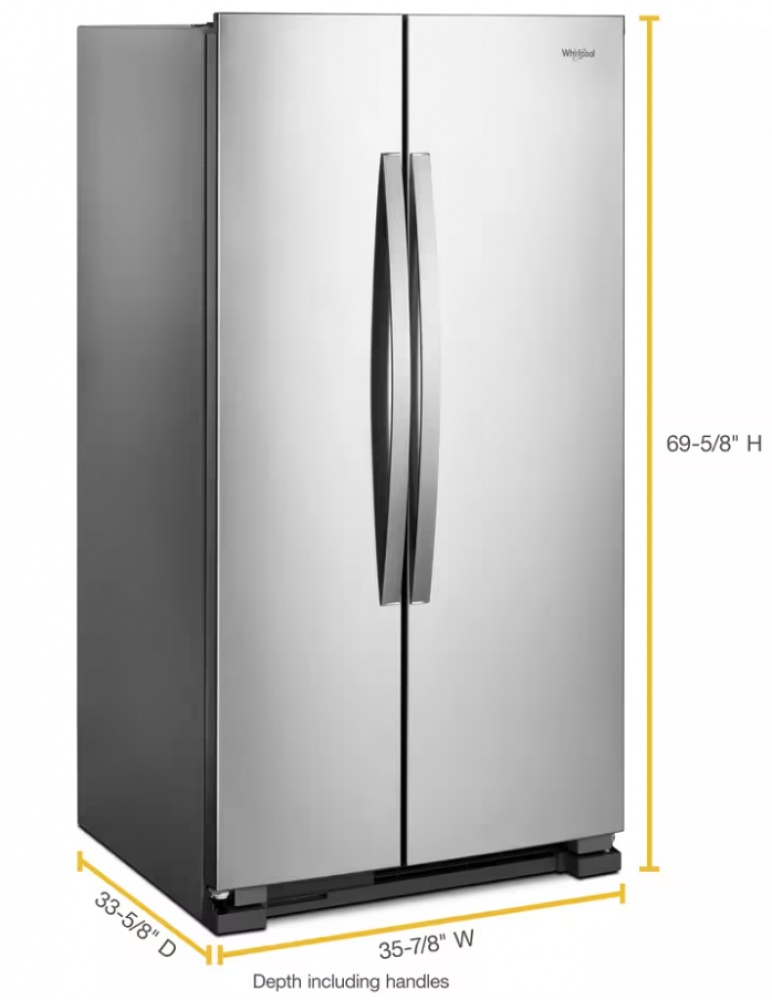 new- whirlpool 36-inch wide side-by-side refrigerator - 25 cu. ft. (fingerprint-resistant stainless finish)