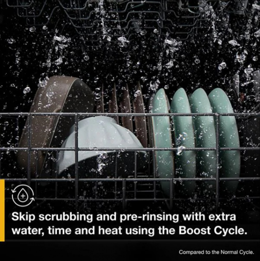 - boost cycle: skip scrubbing and pre-rinsing with the boost cycle. this cycle uses more water, time and heat than the normal cycle and takes less time than the heavy cycle so you can target tough messes that need a little extra effort.