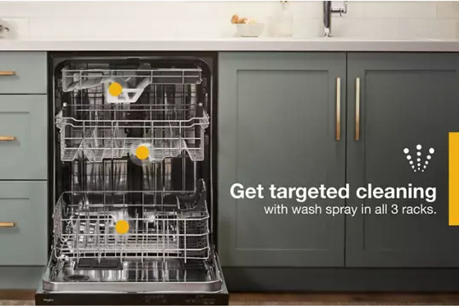 - triple wash spray: get targeted wash action in every rack with triple wash spray. dedicated cleaning in all 3 racks means dishes come out clean the first time.