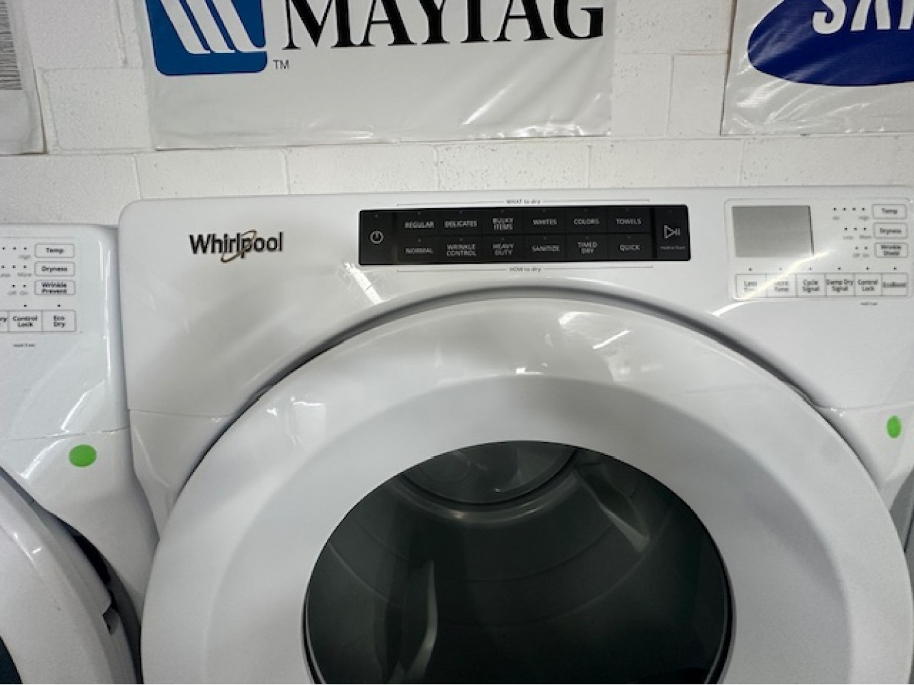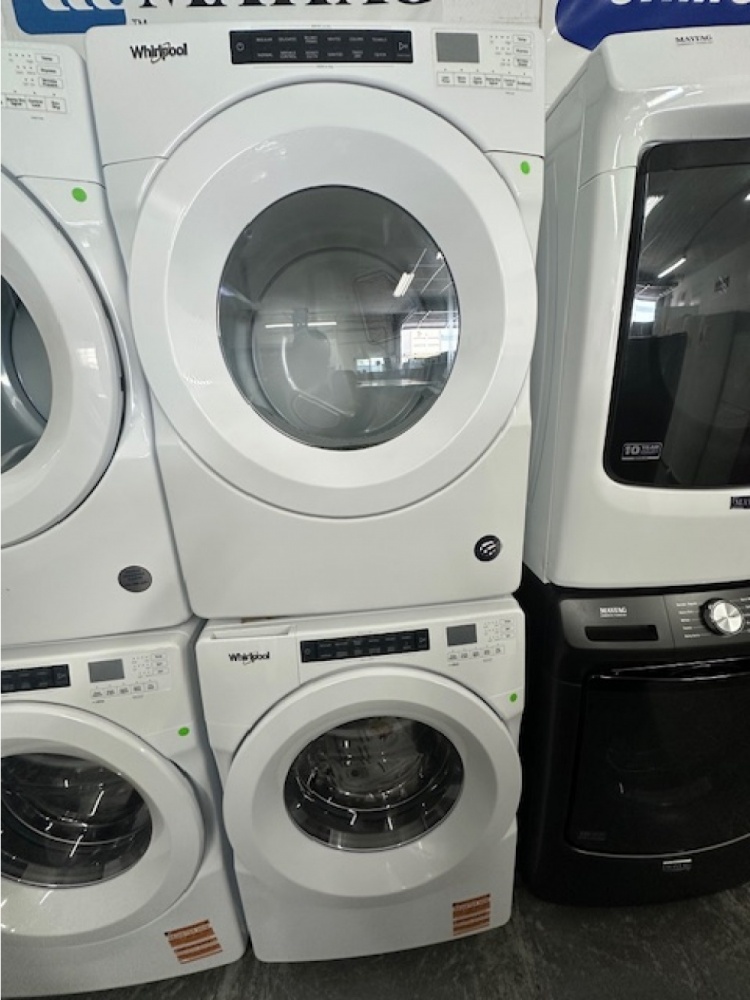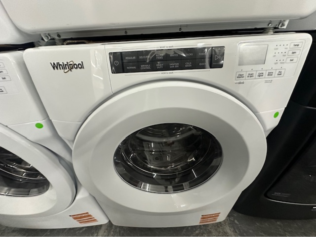 new- whirlpool 4.3 cu. ft. closet-depth front load washer with pre-owned gas dryer set