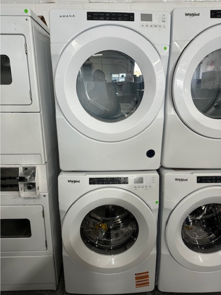 pre-owned amana - 4.3 cu. ft. high efficiency stackable front load washer with 35 cycle options (white)