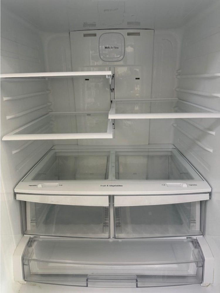 pre-owned lg 30-inch wide french door refrigerator with a total capacity of 21.8 cubic feet