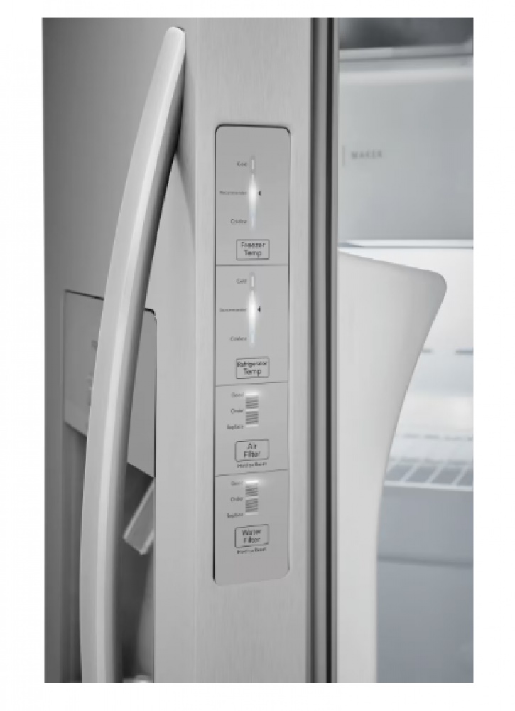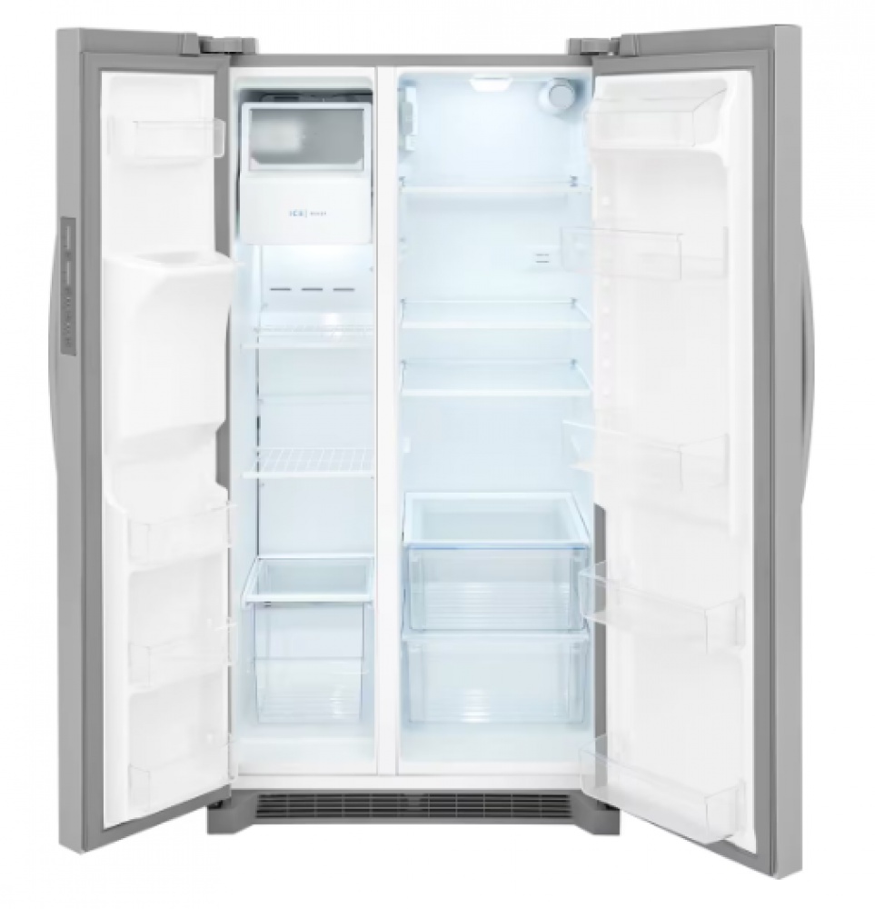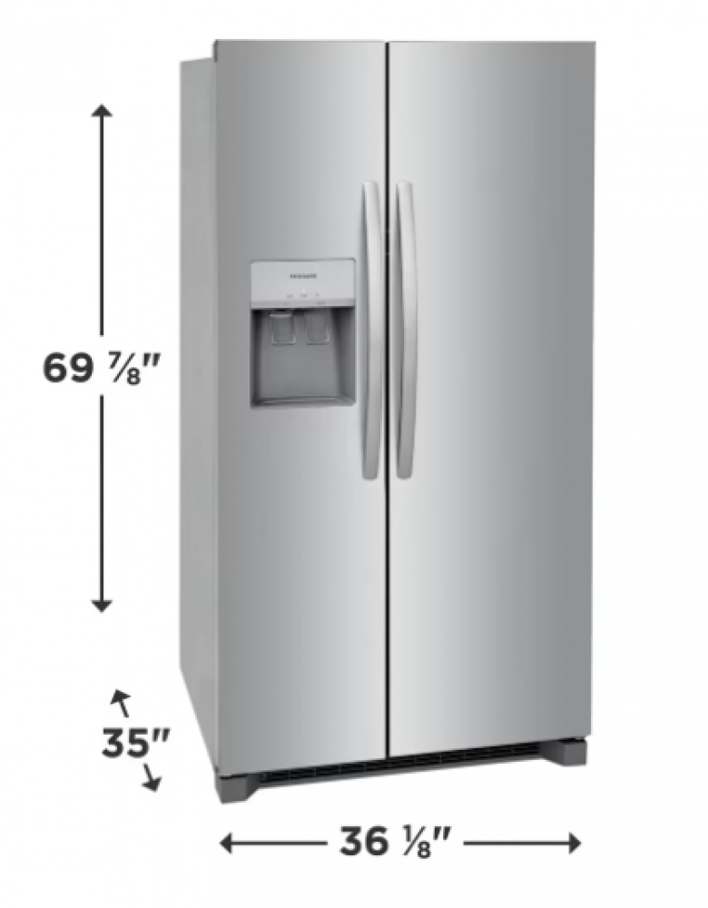 coming soon! new-frigidaire 26 cu. ft. 36" standard-depth side-by-side refrigerator (stainless steel)