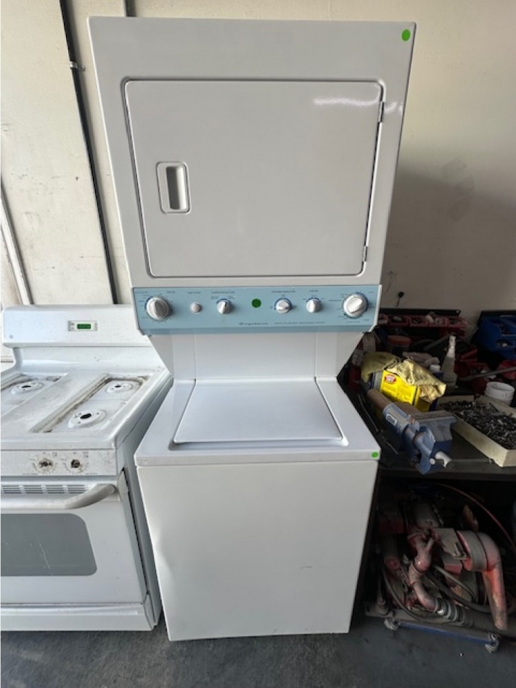 pre-owned frigidaire 27 in. gas laundry center (white)