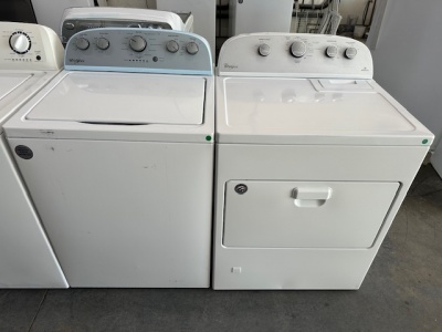 pre-owned whirlpool 3.6 cu. ft. high-efficiency top-load washer & electric 220v dryer (white) model